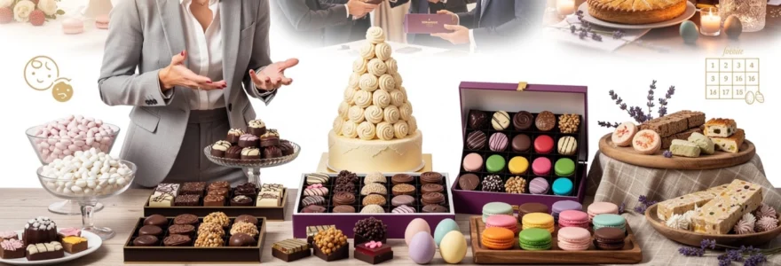 Pour structurer votre réflexion, commencez par définir un budget global par invité, incluant l’ensemble des prestations gourmandes (dessert, mignardises, cadeaux d’invités). Comparez ensuite différentes options : dragées premium, chocolats de marque, macarons de maison parisienne, confiseries artisanales locales. Chaque catégorie de produit porte un positionnement tarifaire spécifique, mais aussi une valeur symbolique distincte. Votre choix doit refléter le standing de l’événement : on n’attend pas le même niveau de prestation pour un anniversaire intimiste que pour un congrès international.