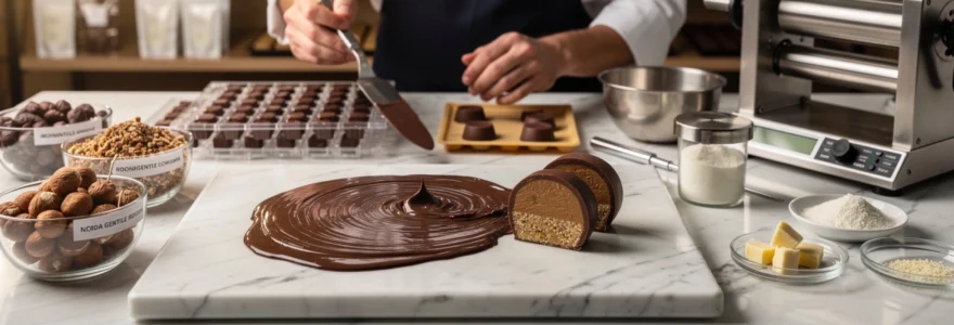 Le chocolat fourré au praliné représente l’excellence de la confiserie artisanale, un équilibre délicat entre la coque craquante et le cœur fondant qui révèle des arômes de noisettes torréfiées. Cette gourmandise, héritière d’une tradition chocolatière séculaire, exige une maîtrise technique rigoureuse à chaque étape de sa fabrication. Du tempérage du chocolat de couverture à la granulométrie du praliné, en passant par la sélection des fruits à coque, chaque geste compte pour obtenir un résultat professionnel. La réussite de ces bonbons dépend d’une compréhension précise des processus physico-chimiques qui régissent la cristallisation du cacao et la stabilité des matières grasses. Avec les bonnes techniques et une attention méticuleuse aux détails, vous pouvez créer des chocolats qui rivaliseront avec ceux des maîtres chocolatiers.